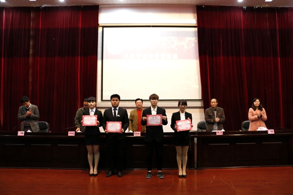 3月14日晚,我校新学期校级学生组织干部大会在学术报告厅举行,副校长江芳俊,学工部、校团委负责人参加大会,为学生干部颁发聘书。