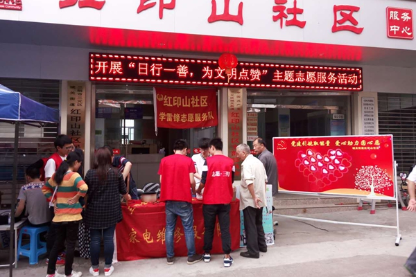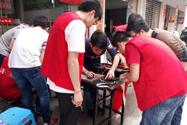 4月20日下午,机电工程学院家电维修服务队应邀到红印山社区服务中心门口参加“日行一善,为文明点赞”为主题的志愿服务活动。