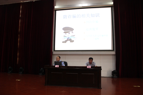 兰剑辉警官首先通过多媒体为学生列举出发生在我校的真实案例,讲解了丢钱捡钱诈骗、短信诈骗、网络诈骗、招工求职诈骗、中奖诈骗等十多种诈骗类型,形象生动地阐述了诈骗形成的根由及其对社会造成的巨大危害和恶劣的影响,希望广大师生充分认识到增强安全意识的重要性,共同防范诈骗,有效保障自身权益不受侵害。