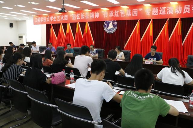 7月6日下午,我校大学生艺术团“追忆长征精神·传承红色基因”巡演动员会在行政楼八楼会议室召开,副校长江芳俊,学工部、校团委负责人,艺术团全体演职人员参加动员会。
