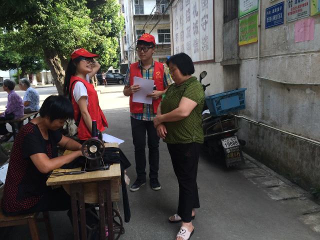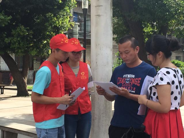 7月13日下午,东霞社区内活跃着一群头戴小红帽、身穿红马甲的青年志愿者,他们是资源与化工学院的大学生,冒着酷暑,手持宣传单和问卷,认真开展着“美丽中国,环保科普行动”环保宣传及问卷调查实践活动。