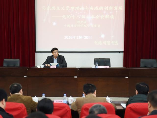 11月30日上午,著名经济学家、马克思主义理论家、中国社会科学院学部委员程恩富教授应邀来校,走上“三明”讲坛,为全校领导干部、党员师生解读党的十八届六中全会精神,报告并作为校党委中心组(扩大)理论学习重要内容。