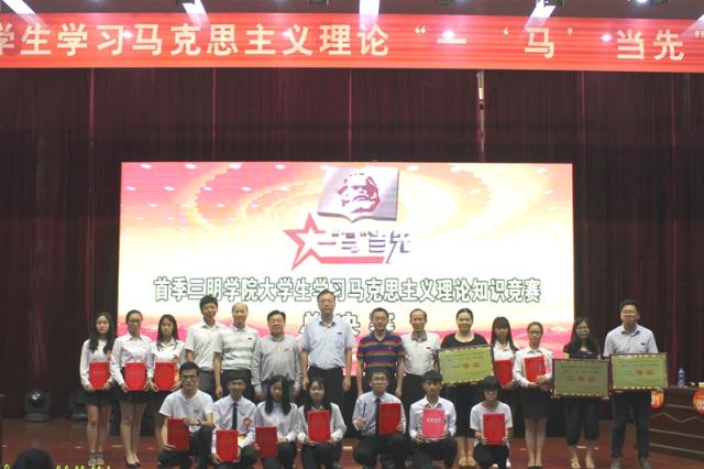 6月8日,三明学院首季大学生学习马克思主义理论“一‘马’当先”知识竞赛总决赛在学术报告厅举行。校领导刘健、赖锦隆、江芳俊出席总决赛现场,并为获奖团队和个人颁奖。学工部、校团委、马克思主义学院、文化传播学院负责人到场观看比赛。