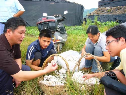 一大早,实验调研小组来到了古田县大桥镇苍岩村。一排排整齐、微缩型的楼房,一朵朵晶莹剔透的银花让同学们惊奇不已,在大桥镇苍岩村生产基地里,古田县食用菌专业技术人员向同学们介绍了各种食用菌的名字以及他们的种殖方法