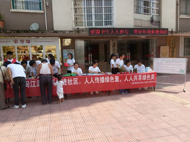 为提高居民的环保意识,建设绿色和谐家园,让环保走进社区,走进家庭,走进生活。7月22日,三明学院“绿水青山,美丽三明”暑期实践队全体成员走进桃园社区,开展大型环保志愿活动。20多名同学通过展板、横幅、环保知识传单等多种方式,向社区居民声情并茂地宣传环境保护知识。