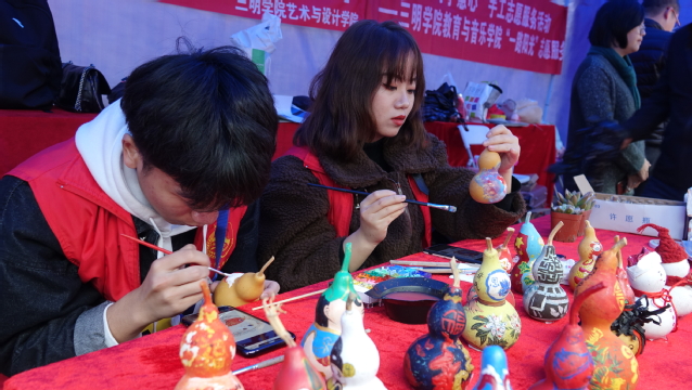 活动现场,林有义老师带领的“迎新春”春联书写师生现场挥墨,为泰宁的乡亲送去了新春的祝福,展示了我校笔走龙蛇的风采,书写了时代赞歌;雷文飞老师带领的“父老乡亲”人物肖像速写师生把笔言欢,为当地村民勾勒出一幅幅珍贵的肖像画,极具珍藏价值;家电维修队吸引了众多村民的驻足,大家纷纷回家把自家损坏的小家电拿来维修,并表示希望维修的惠及面更广一些。我校团委还带去了“葫芦工艺制作”、“蓄势待发、速绘新岁”、“环保宣传志愿服务:垃圾分类大比拼、环保灯谜赢绿植”、“创意手工展”等学校特色项目,为此次活动增添了色彩,传递了正能量。