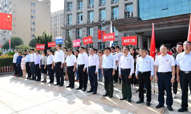 “我和我的祖国,一刻也不能分割……”,伴随着缓缓的歌声,全体在明校领导,党政办、宣传部、学工部、校团委负责人,二级学院值班院领导近300名师生代表迎着冉冉朝阳,注视着五星红旗缓缓升起,拉开了全场活动的序幕。