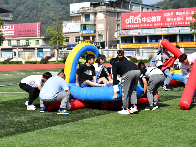本次活动以“凝聚青春正能量,携手共进新征程”为主题,将“三明三康”精神理念化身“砥砺前行”“上下一心”“珠联璧合”“珠行万里”等趣味站点游戏之中,在欢声笑语中用健康积极的姿态为祖国庆生、为中秋祝贺。“小心小心,往前走”,“砥砺前行”站的游戏在紧张刺激的氛围中展开,泡沫轴的滚动牵引着每个队员的心绪;“珠联璧合”站点,每个团队手拉手传递着呼啦圈,紧攥着的双手微微冒汗,生怕落后他人一秒;最后在终点“同心合力”站中,骑在龙形道具上的队员们,努力飞奔却使不上劲的模样逗笑了现场所有观众。