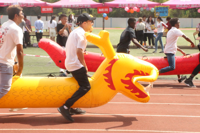 同时,在南区田径场各个学院承办了各种趣味活动,博饼、指压板、幸运骰子等趣味游戏吸引了大量在校师生的积极参与,黄皮肤、白皮肤、黑皮肤,不同的肤色,不同的国家,都一同为我们的祖国庆贺,现场人声鼎沸,加油声此起彼伏,一顶顶红色帐篷拼凑出了一幅幅热闹非凡的欢乐场景,师生们纷纷表示“游”在其中、乐在其中。