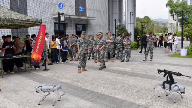 展演会场外,“国防知行号”国防教育宣传车展示体验活动安排了基础射击教学、实用射击教学、手雷投掷教学、战场救护教学、无人机实操教学、机器狗实操教学等内容,吸引了众多青年学生前来互动体验。