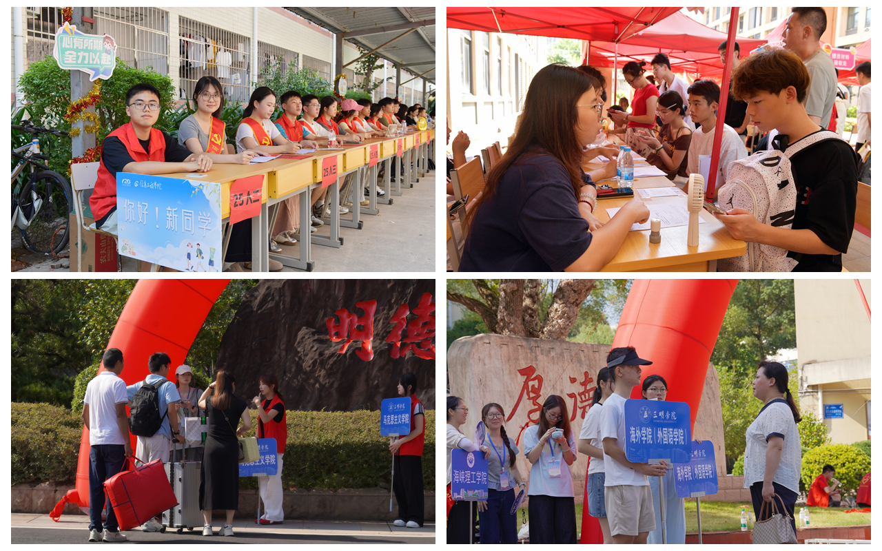 迎新当天,各学院周密安排、通力协作,有序开展身份复核、报到咨询、绿色通道办理等各项工作。机关党委、校学生会、各二级单位志愿者不畏高温,始终坚守岗位,耐心答疑、暖心引路,确保整个报到流程高效顺畅、温馨周到。学校还在动车三明北站和三明站、三明汽车南站、沙县机场等重要交通枢纽设立迎新服务站,以热情、贴心的服务迎接每一位新生的到来。