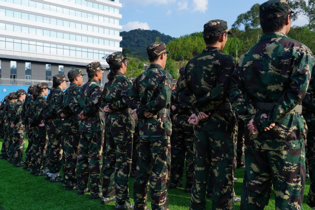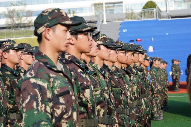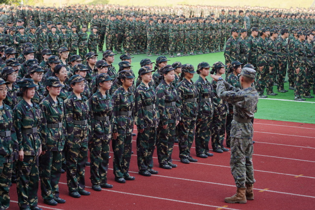 2025级全体学生,学校军训工作领导小组成员和学生辅导员参加开训仪式。
