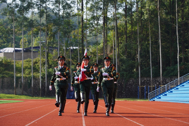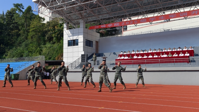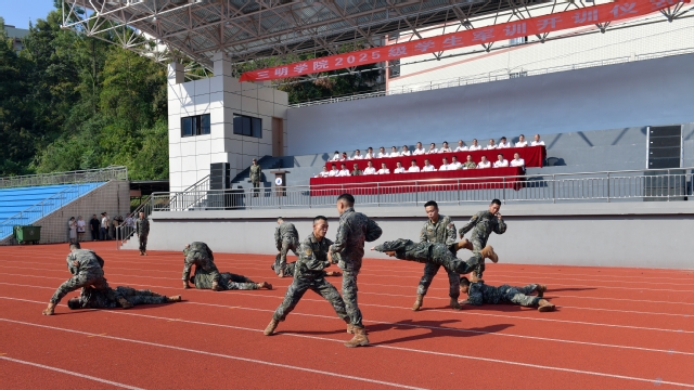 校党委副书记廖景榕在讲话中指出,今年是中国人民抗日战争暨世界反法西斯战争胜利80周年,抗战的历史深刻警醒我们“国无防不立,民无军不安”,强国必先强军,强军必先强教,军训是大学阶段国防教育的重要一课,是青年学子感受军人作风、理解国家安全、树立家国情怀的关键起点。希望全体2025级学生通过军训锚定理想信念,传承“听党指挥”的红色基因;锤炼顽强意志,汲取“敢于胜利”的精神力量;凝聚集体观念,养成“令行禁止”的优良作风;强化协同配合,弘扬“军民团结”的优良传统,以饱满的热情、昂扬的斗志和坚定的行动,展现明院学子的时代风采与青春担当。