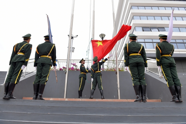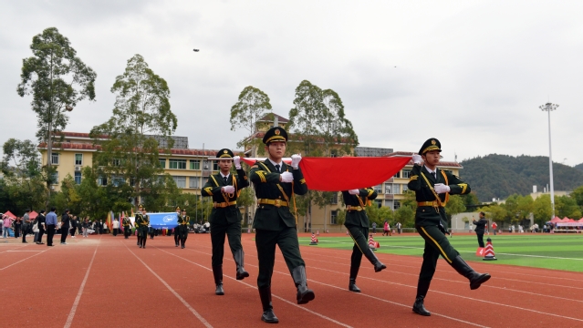 在庄严的升旗仪式后,校党委陈列平书记宣布运动会开幕。