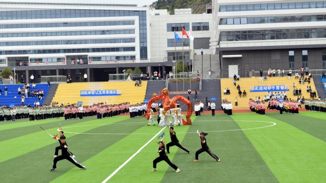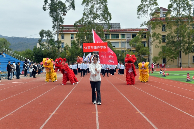 开幕式上,体育与康养学院学生带来了精彩的武术、舞龙、舞狮等表演,千名学子齐聚田径场共舞青春,整齐划一的动作、活力舞动的身姿,展现当代大学生的活力与风采,也将现场氛围推向高潮,赢得了在场师生的阵阵掌声。