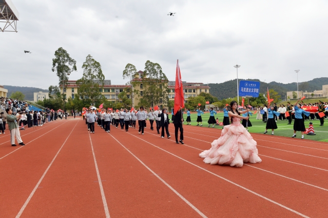 学校第二十届田径运动会组委会全体成员,二级学院院长及师生代表参加开幕式。