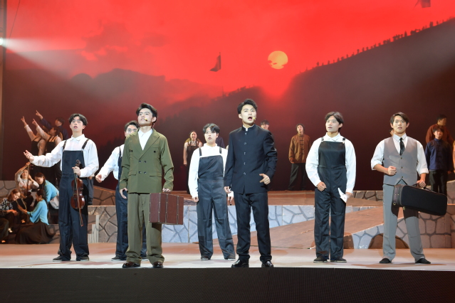 抗战岁月篇章中,《那一棵高大的枫杨树》以女声独唱诉说内迁办学的坚韧守望;《三杆立天地》通过领唱与合唱,有力再现“笔杆、枪杆、锄杆”并重的战时育人实践;《笠剑芳华》以合唱形式,演绎“戴笠学农勤、佩剑誓卫国”的昂扬学风;《大时代的歌者》与配乐诗朗诵《大湖》,则共同勾勒出烽火岁月中的家国情怀与历史回响。
