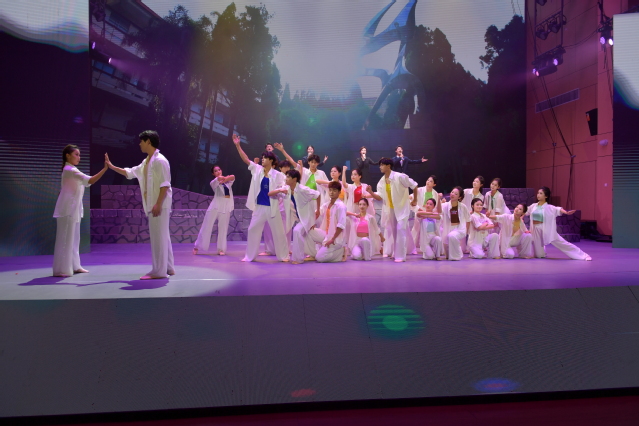 演出充分运用多媒体技术,借助LED屏构建起贯穿历史的“时空隧道”。光影随三大篇章的旋律流转,引领观众从乌石山麓的初办学堂,到燕江之畔的战时课堂,再漫游至沙溪河畔的现代校园。历史影像在音符中“苏醒”,文献手稿随节奏“呈现”,艺术与技术的深度融合,拓展了校史教育的叙事维度与感染力。