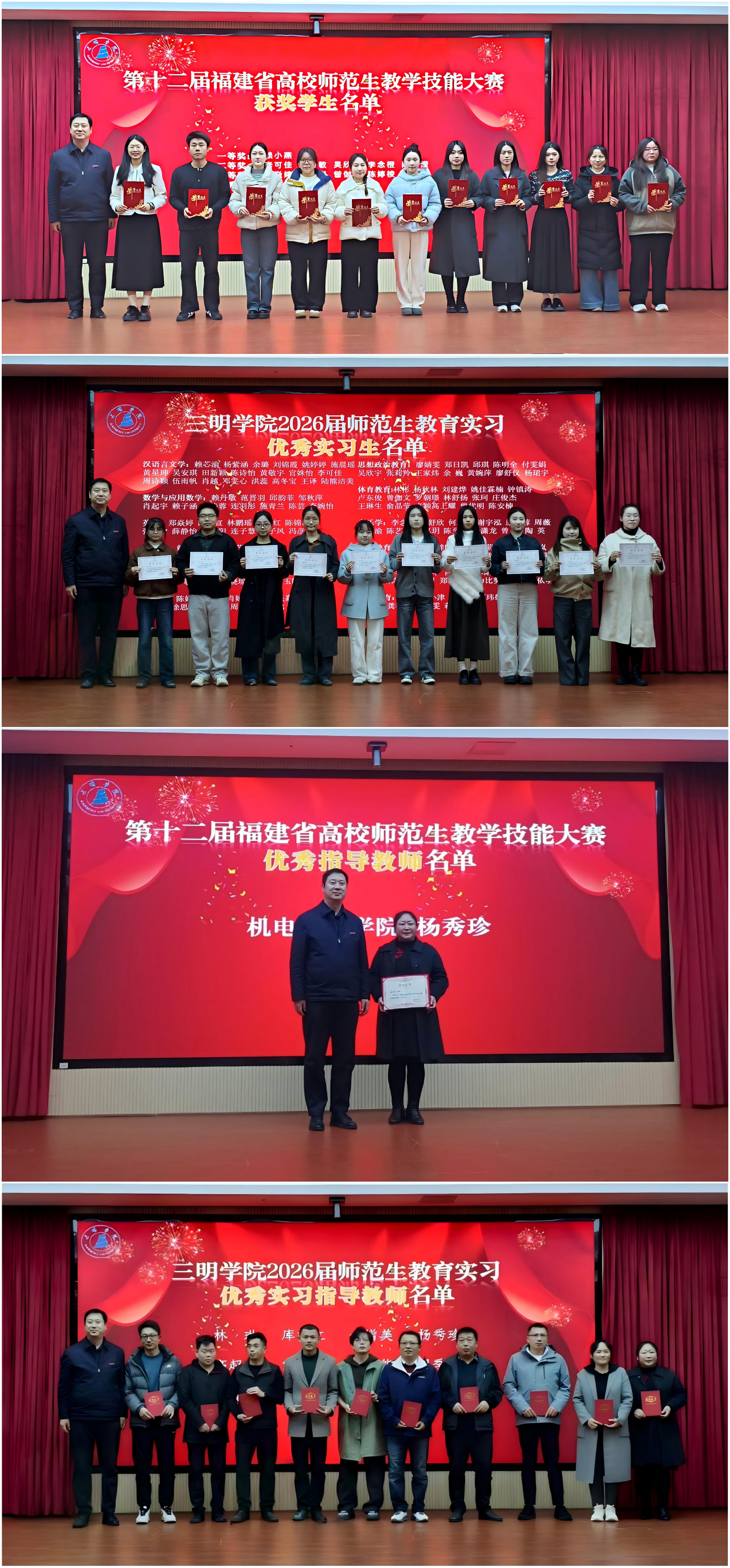 为总结师范生教育实习成果,表彰先进,1月4日,三明学院2026届师范生教育实习总结暨表彰大会顺利召开。校党委委员吴龙副校长出席会议,学工处、人事处、教务处相关负责人,师范专业所在学院分管领导及师生代表等180余人参会。