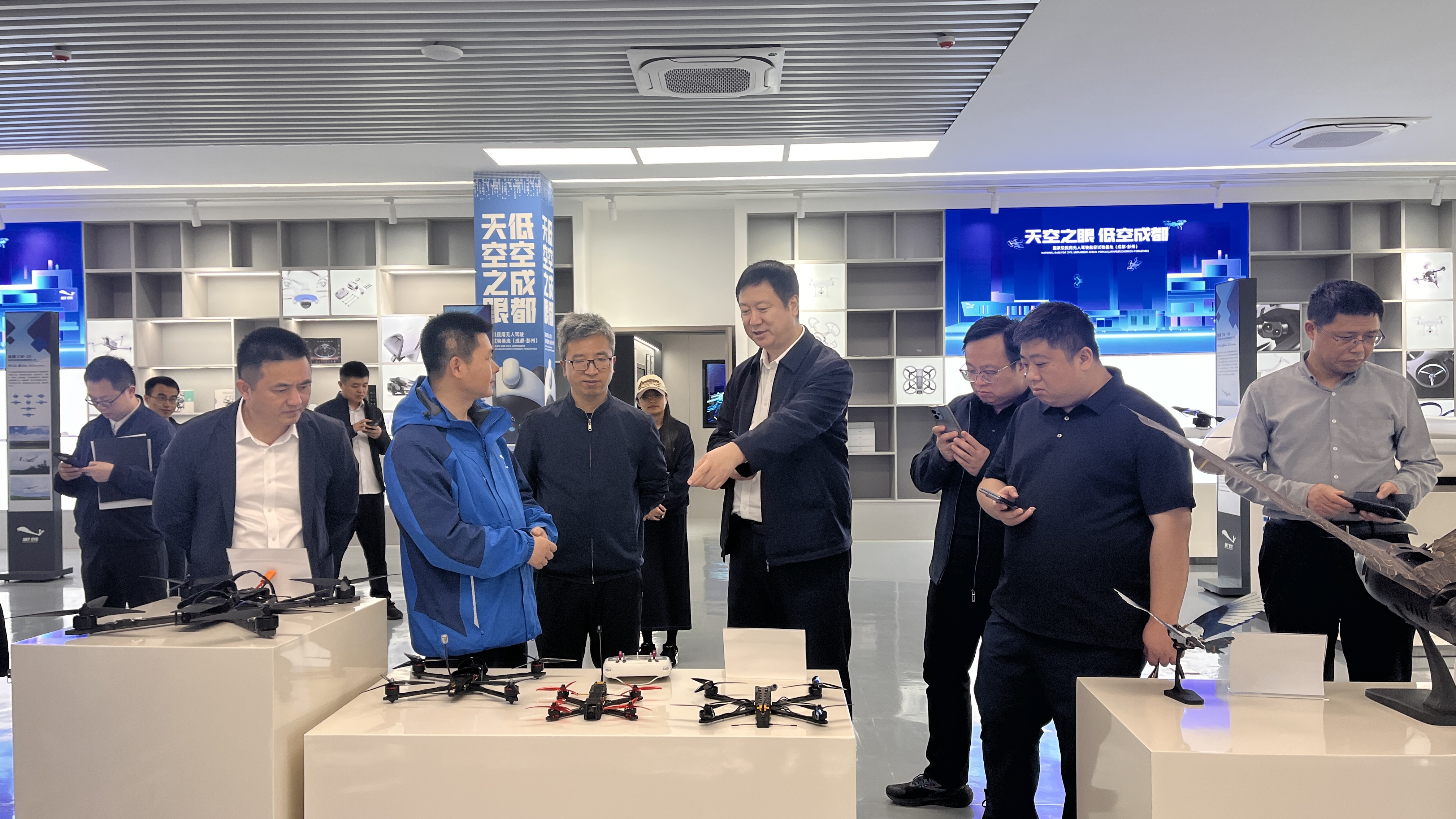 调研组一行实地参观了中国民用航空飞行学院广汉机场、彭州市翔彭智航展示展销中心。