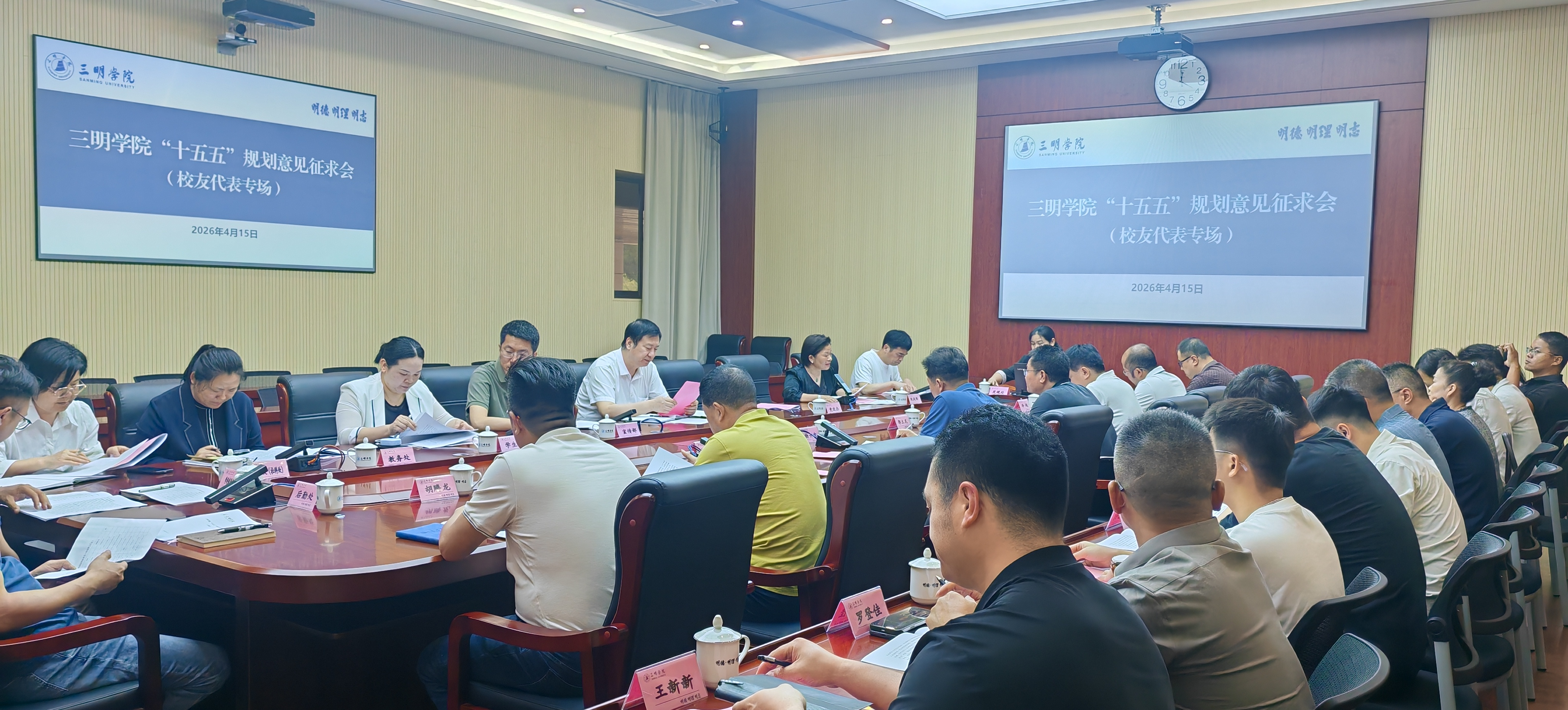 为广纳校友智慧、凝聚发展共识,扎实推进学校“十五五”规划科学编制,4月15日下午,三明学院“十五五”规划校友专场意见征求会在第二会议室召开。副校长吴龙出席会议并讲话,来自各行各业的20余名优秀校友代表齐聚一堂、建言献策。会议由统战部部长、校友会常务副会长兼秘书长主持。